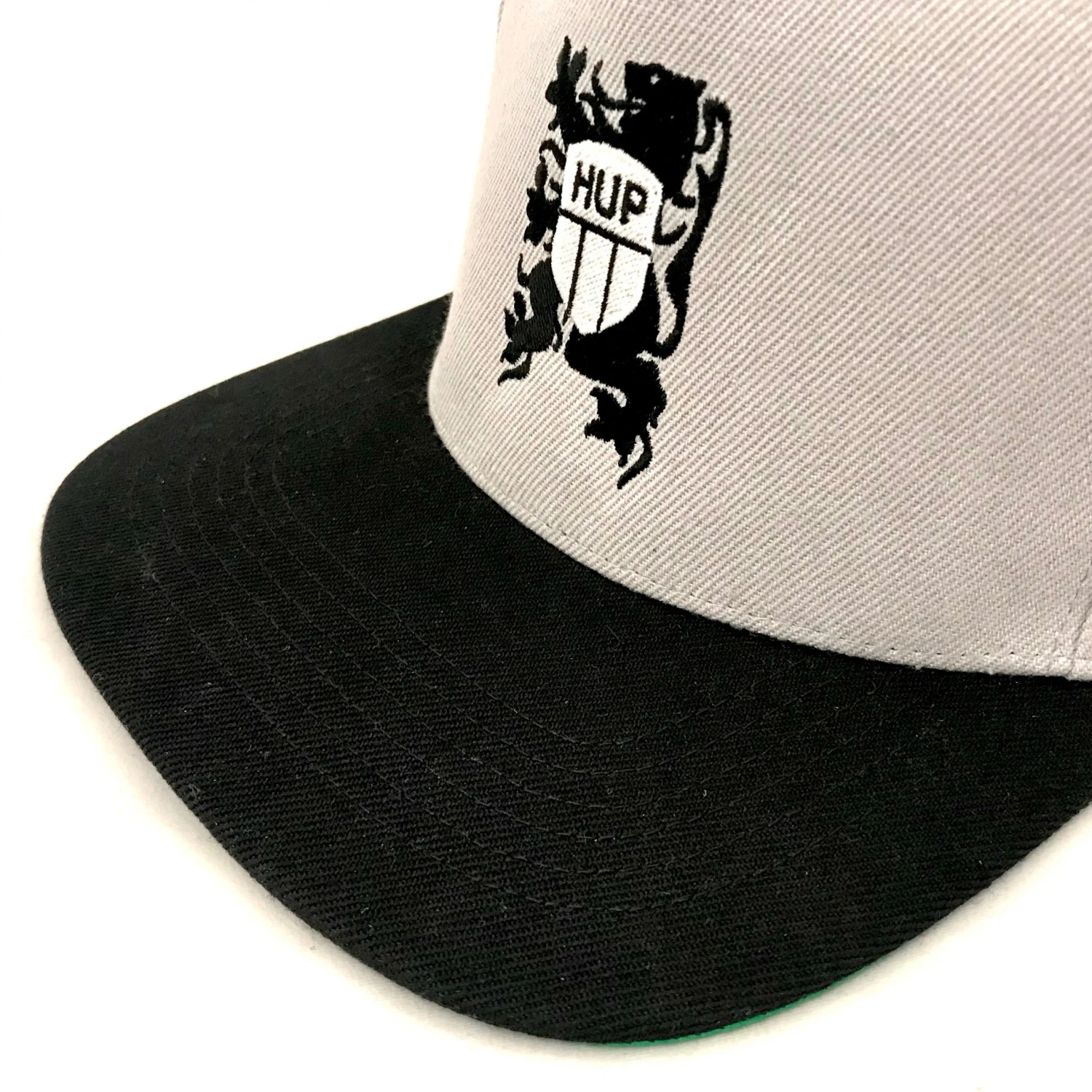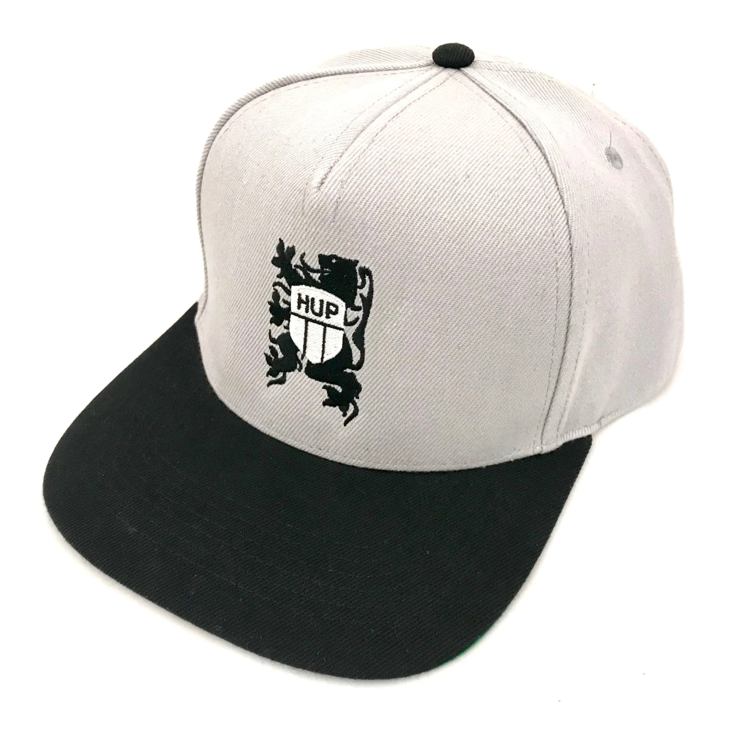 Stylish Grey and Black 2-tone cap and Green underpeak contrast, with embroidered HUP Lion logo and cool flat peak.