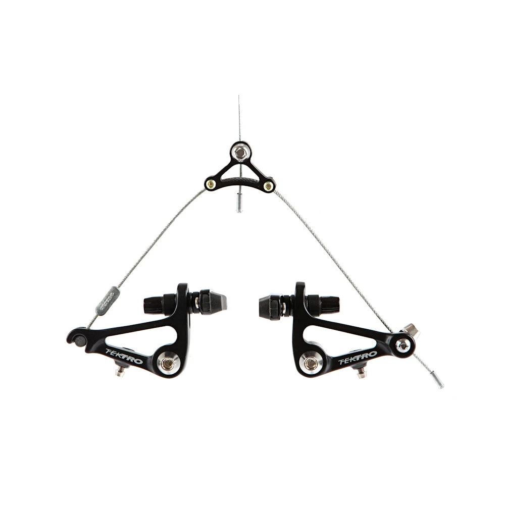 Brake straddle cable carrier for cantilever brakes – with locking grub-screws to centre the cantilever arms, in black Alloy. Includes straddle cable and cable end;