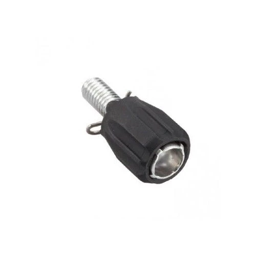 Gear cable barrel adjuster (M5) thread for 4mm outer gear cable, attached to the frame’s down tube: